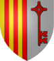 La partie dextre du blason rappelle la maison de Barcelone. La partie senestre évoque saint Pierre, patron de l’église.