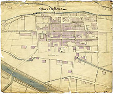 Remarquable par son plan en damier hérité du moyen-âge (1190-1231), dont la régularité évoque l’urbanisme des bastides du sud de la France, la ville offre la particularité de se développer non pas autour d’une place mais de part et d’autre de l’axe principal de communication : l’axe France-Italie (route nationale n°100). Il ne reste rien de l’enceinte de remparts flanquée de 22 tours et percée de 4 portes qui protégeaient la ville jusqu’aux guerres de religion (16e siècle).(4)